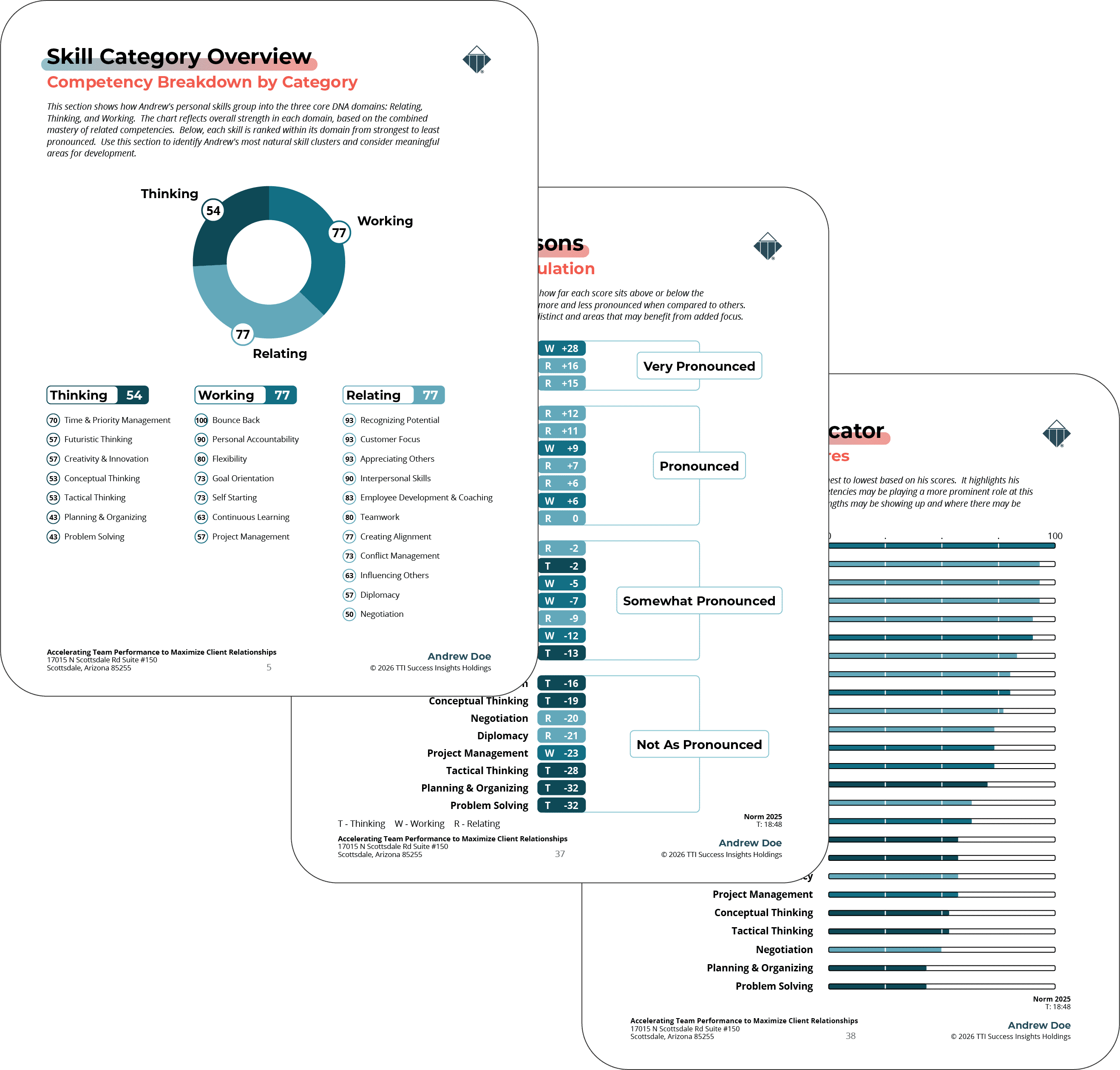 The TTI DNA Report provides clear, strategic, and actionable insights that empower individuals to create a meaningful Personal Development Plan on their own—far beyond generalized observations. The stand‑alone report gives people ownership of their growth with practical steps they can immediately apply.